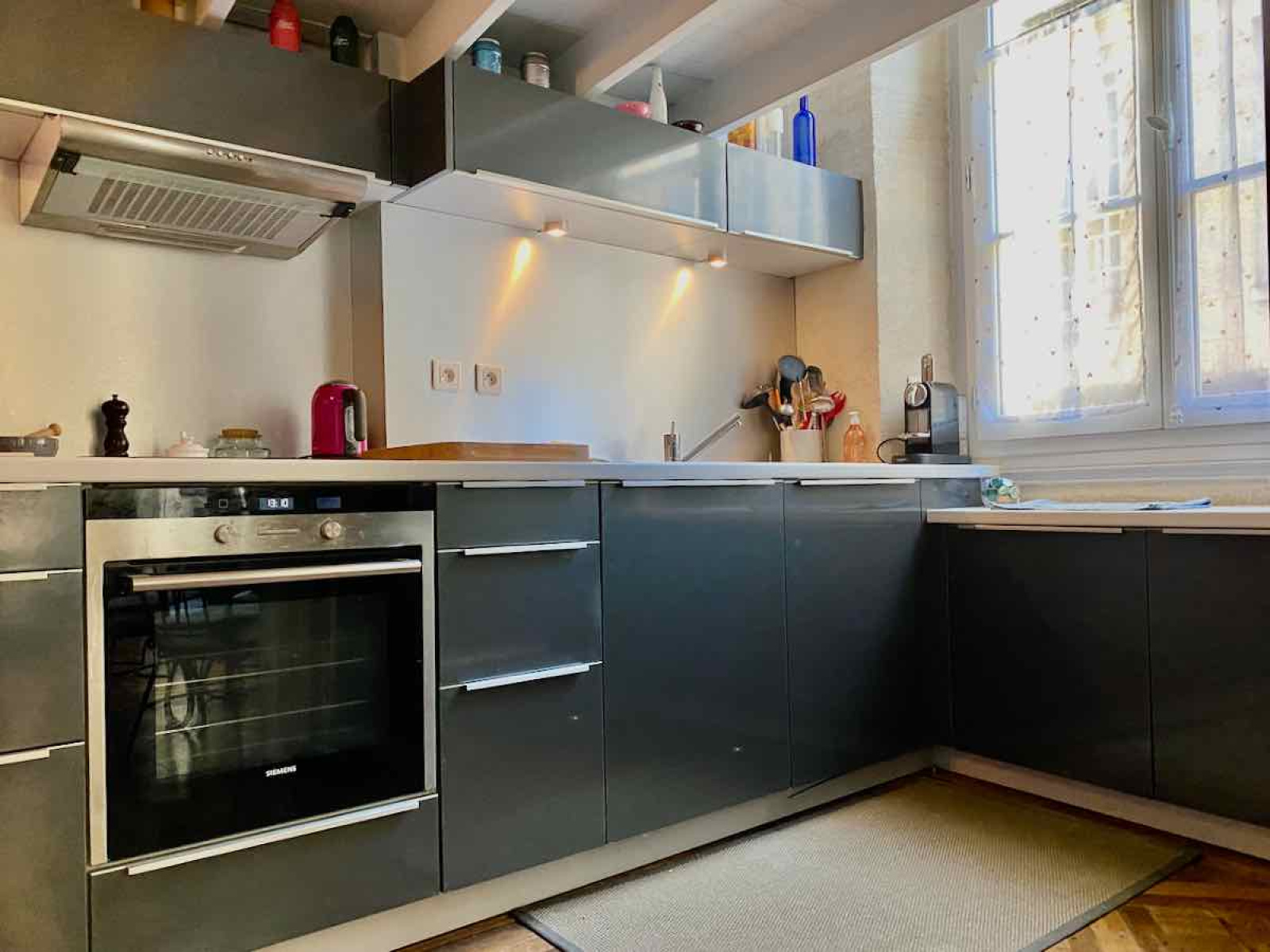 Situé dans le centre historique de Bordeaux, au deuxième étage d'un bel immeuble en pierre, aux jolies parties communes, élégant appartement de 56 m2. Cet appartement offre de beaux volumes et des prestations anciennes : parquet en pointe de hongrie, moulures, cheminée. Il se compose d'un agréable salon séjour qui constitue le coeur de l'espace de vie et d'une cuisine indépendante équipée fonctionnelle et moderne. Le côté nuit dispose d'une belle chambre en mezzanine et d'une salle d'eau. De grandes fenêtres apportent une belle luminosité. Ce ravissant appartement offre un cadre de vie agréable en plein coeur du centre-ville de Bordeaux.